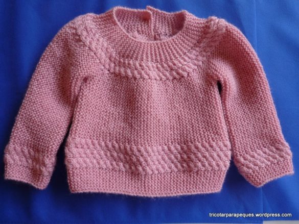 Otra versión del jersey para bebé publicado en este blog, modelo 4. Esta vez en color rosa, con una cenefa de ochos en el cuello y bajos.