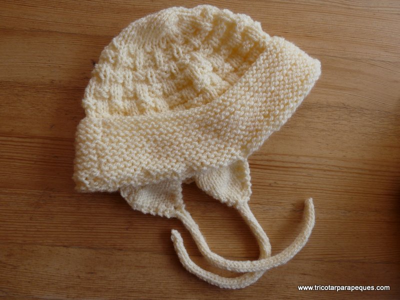 Puntos utilizados: Punto siempre derecho para el borde. Punto de cesto 2-4-2 para el gorro. Ver el modelo 72.